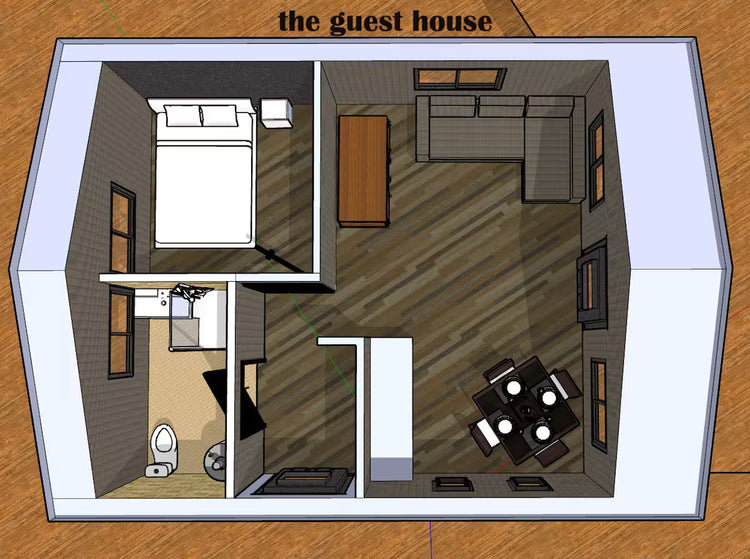 Cosy 32 sqm house with one bedroom, bathroom and a small livingroom with kitchen.